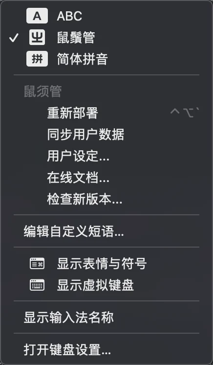 Recently, I learned from Teacher fernvenue how to configure input methods on Debian GNOME and found that Rime is also applicable on macOS. Configuring Rime/Zhongzhouyun on macOS is just as straightforward.