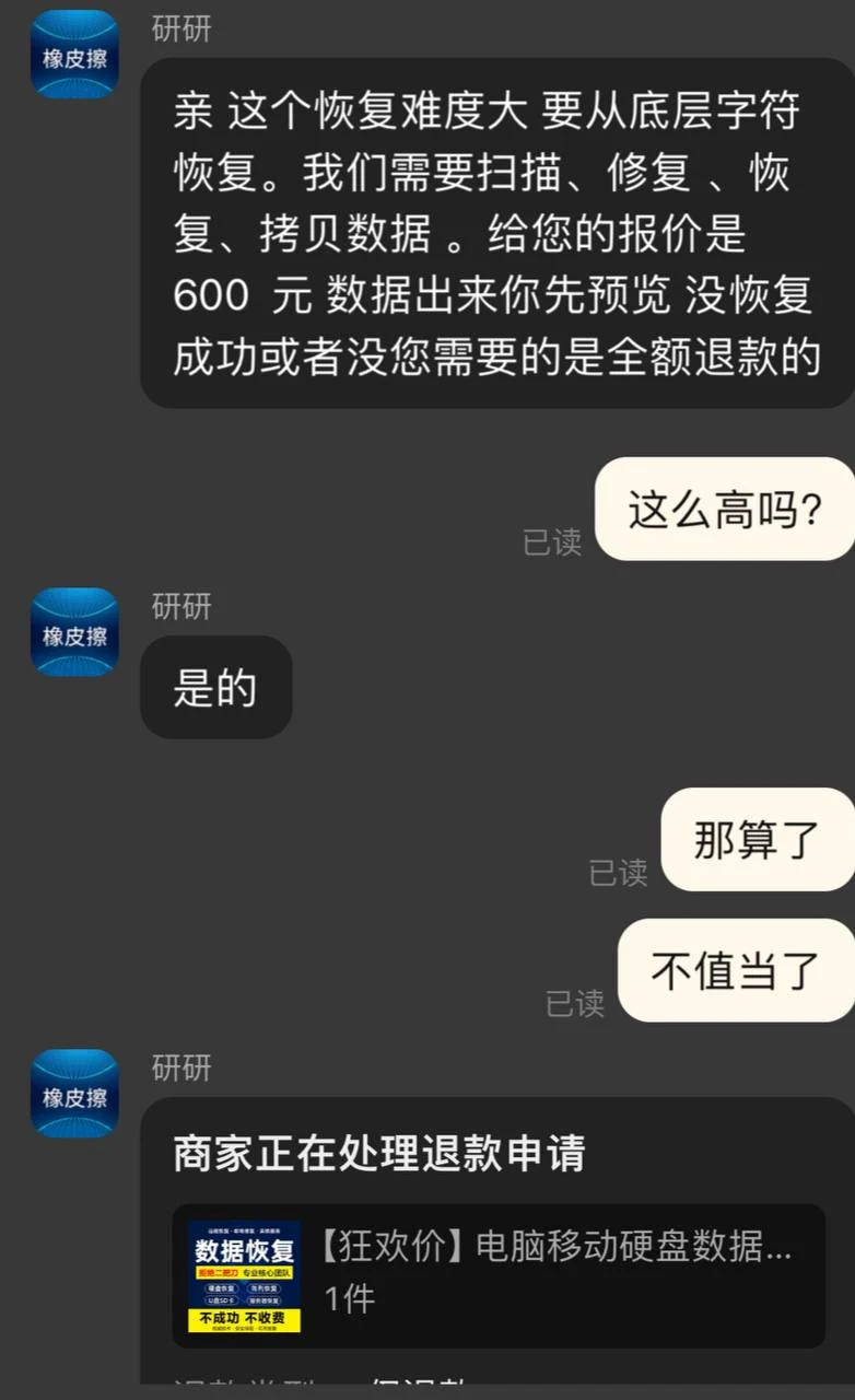 I immediately started searching for various methods to recover the file and also sought help from Taobao. However, the price quoted on Taobao was 600 RMB, and recovery wasn’t guaranteed. Come on, I barely make any money; if I give you 600 RMB, what’s left for me?