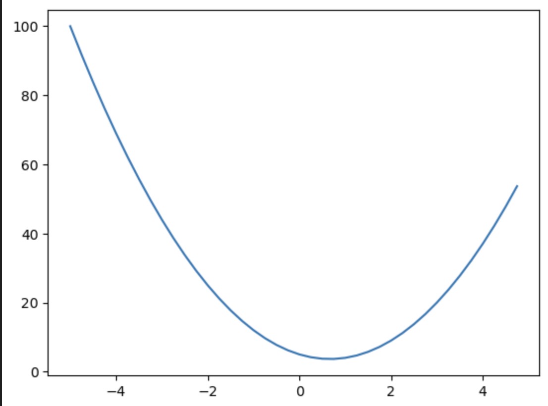 xs = np.arange(-5, 5, 0.25) # set of values from -5 to 5 with step 0.25