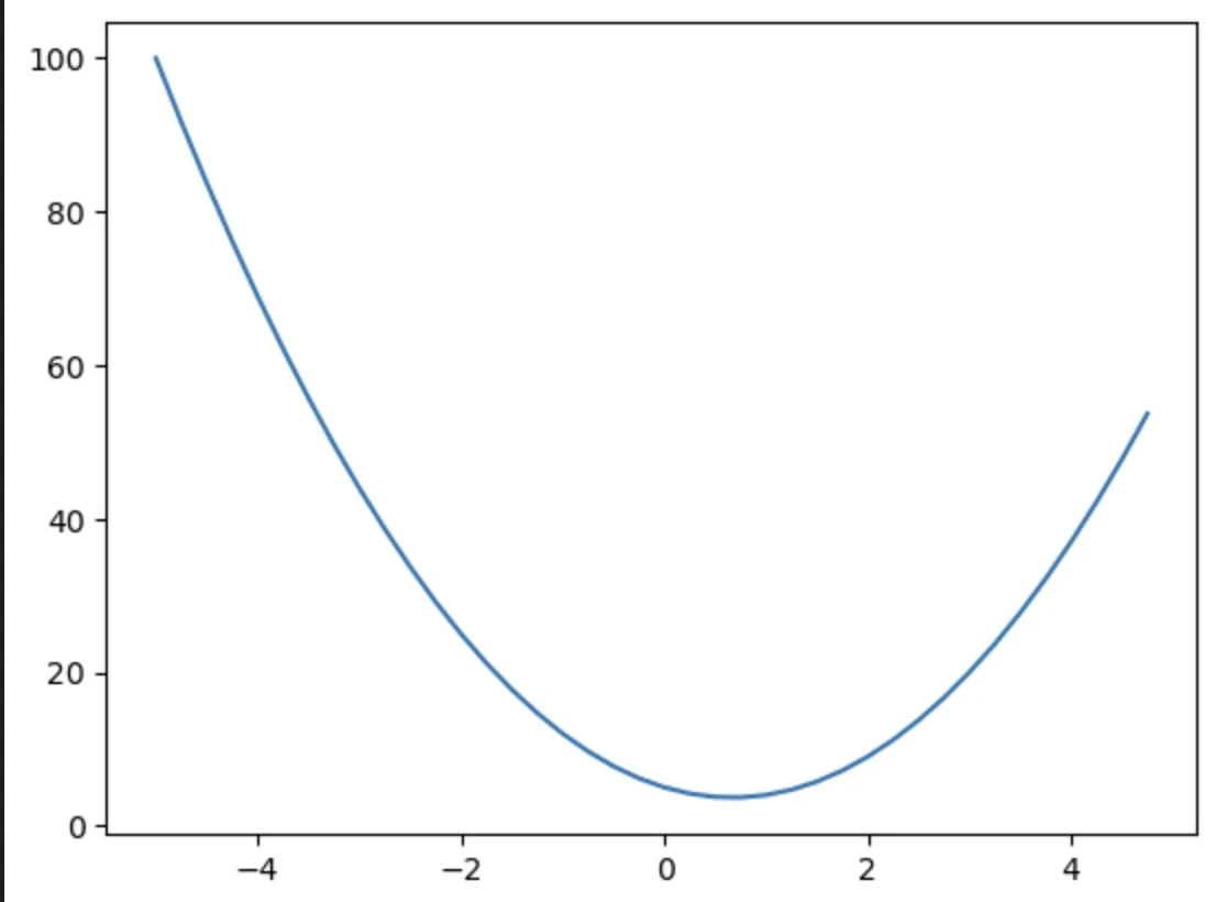 xs = np.arange(-5, 5, 0.25) # set of values from -5 to 5 with step 0.25